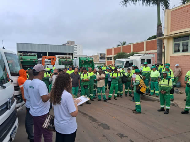 Notícia - Assembleia com trabalhadores da coleta de lixo, áreas verdes e varrição da empresa Corpus Saneamento, em 25/02/26, no município de Indaiatuba, referente nova data base da categoria