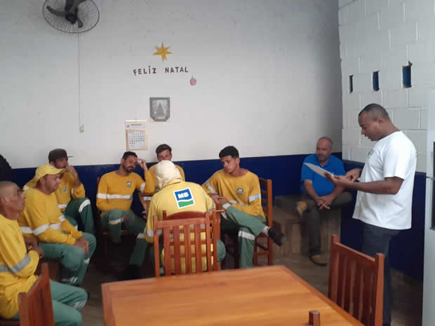 Notícia - Assembleia com coletores e varredores da empresa MB Engenharia, dia 05/03/26, no município de Piracaia. Referente nova data base das categorias